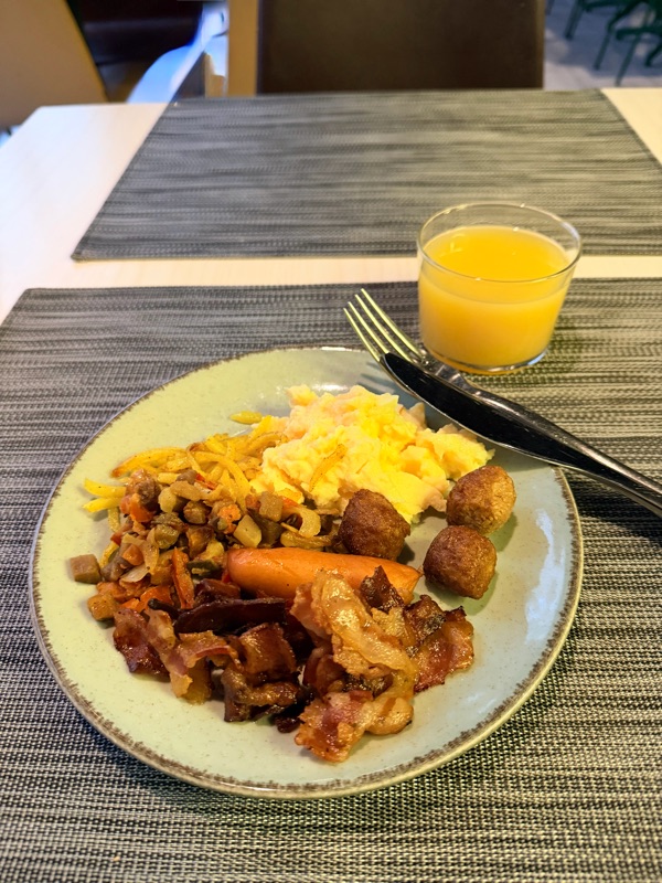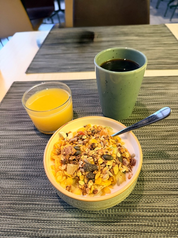 Tog som alltid en tidig frukost. Ganska lugnt i frukostlokalen vid 07.15 tiden. En fin frukost men försökte hålla igen lite så man inte blir för mätt. Nu tar jag det lugnt på rummet i