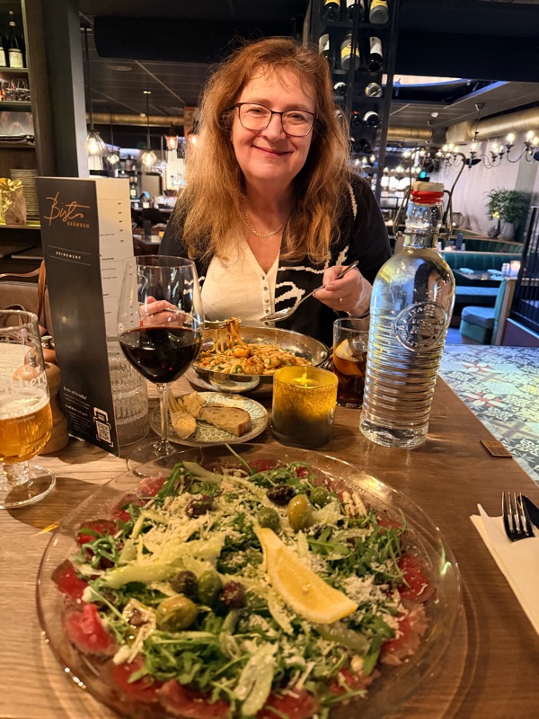 Kvällens middag åt vi på Bistro Gränden. Carpaccio för mig och pasta för Mia. Gott.
