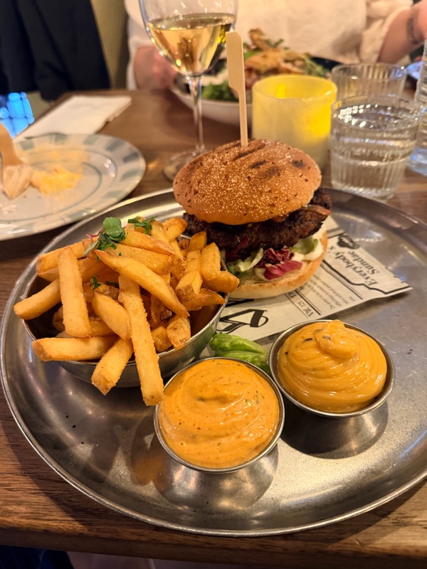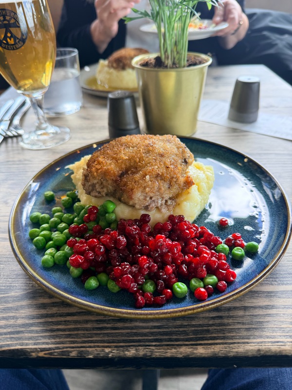 Även i dag blev det lunch på lokal. De serverade Wallenbergare på Bryggans. Gott.