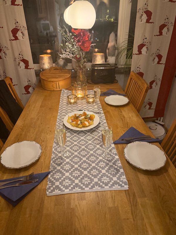Det blev en fin kväll med god mat och bingolotto på tv. Vi var vakna vid tolvslaget. Kollade sedan JVM matchen mellan USA och Sveriges. Gick och la mig någon gång under andra perioden. Såg nu på morgonen att Sverige vann.