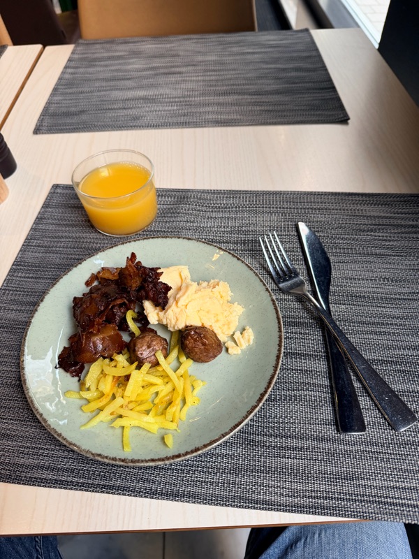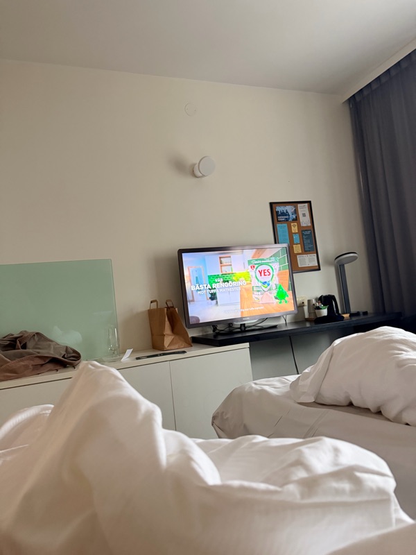 Frukost vid 07.40 ca. Bra frukost på hotellet. Sen blev det lugnt på rummet med tv koll innan vi tog tåget hem vid 10.14 tiden. Kul kväll men alltid skönt att komma hem.