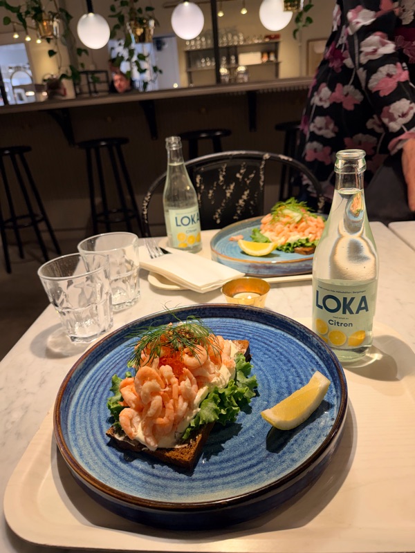 Dagens lunch tog vi på Skultuna Mässingsbruks Bistro. En god räkmacka. Blåser kallt i dag, längtar tills våren är här på riktigt.